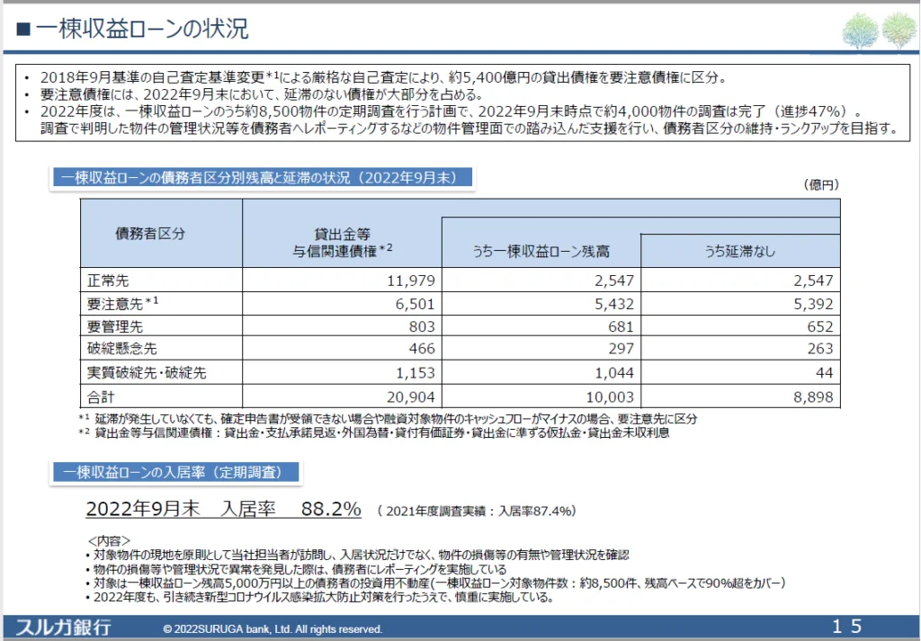 2022年11月25日に公開された2022年度半期のスルガ銀行の投資家向け資料より