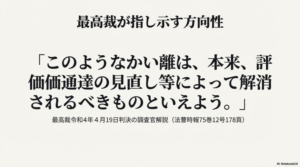 この運用を決定づけたのが、令和4年4月の最高裁判決です。最高裁は、「形式的な評価が実質的な租税負担の公平に反する場合」には、通達以外の評価を行うことに「合理的な理由がある」とし、国税庁側の処分を適法と認めました。