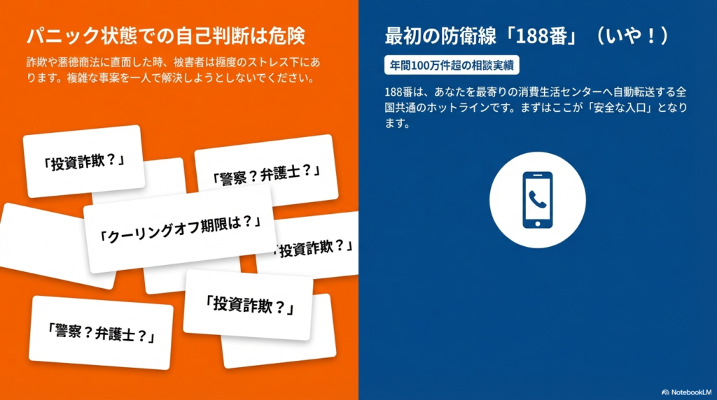 消費生活相談員は、消費者が最初に頼れる「入口の専門家」だ。幅広い相談を受け付け、解決の糸口を示してくれる。しかし、投資詐欺や金融機関の不正のような複雑な事案では、警察・金融庁・弁護士といった専門機関と連携することが不可欠だ。「おかしいな」と思ったら、まず188番へ。そこから適切な専門家への橋渡しが始まる。