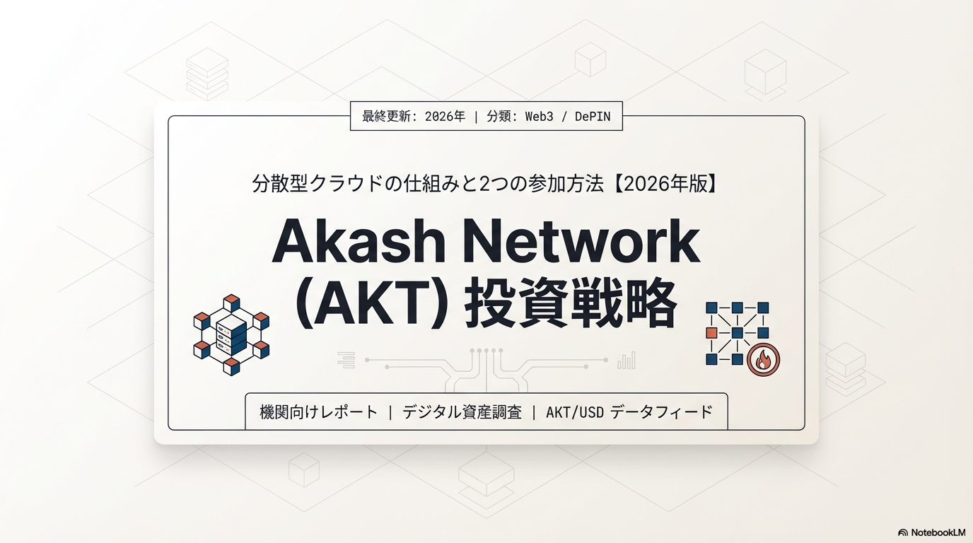 Akash Networkは余剰GPUを貸し出す分散型クラウド市場である。ノード参加にはバリデーターとプロバイダーの2形態がある。本稿では各形態の収益構造・リスク・選び方を比較する。